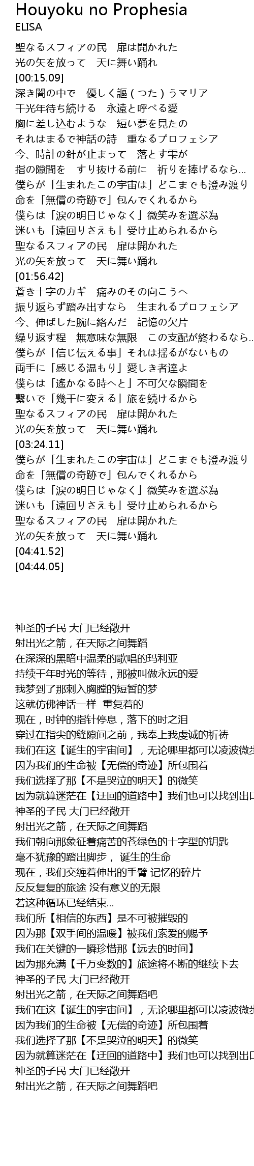 | [00:49.40] | それはまるで神話の詩 重なるプロフェシア |