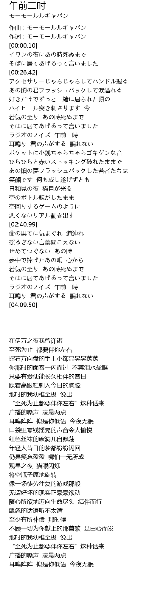 | [03:55.03] | ラジオのノイズ 午前二時 |