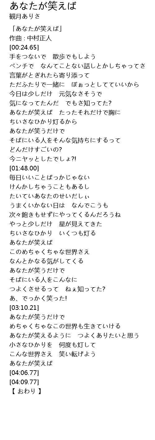 | [01:14.48] | あなたが笑えば たったそれだけで胸に |