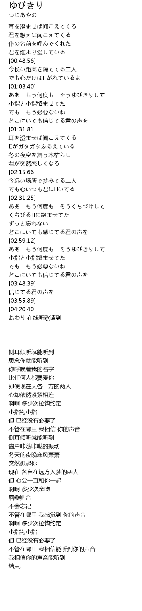 | [03:20.78] | ああ もう何度も そうゆびきりして |