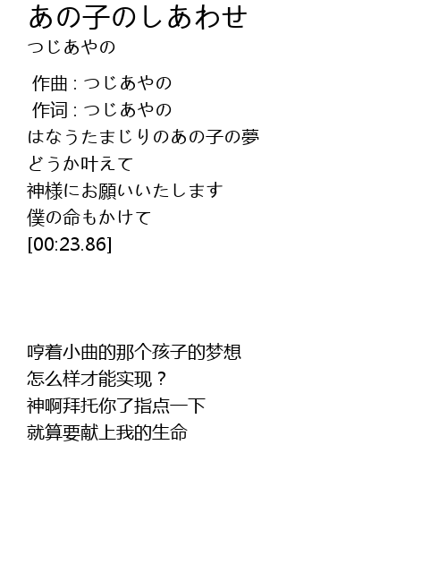 | [00:00.23] | 作词 : つじあやの |
