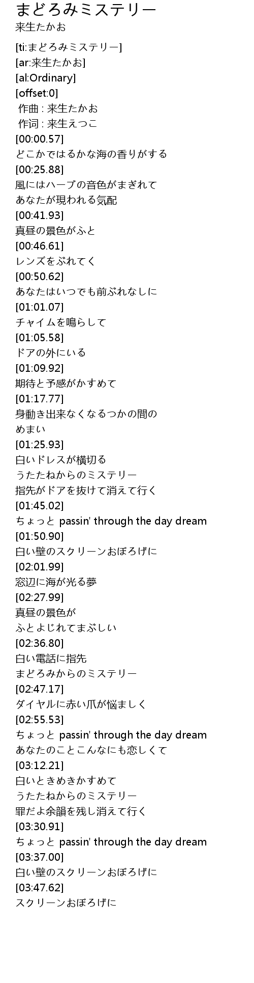 | [00:53.41] | あなたはいつでも前ぶれなしに |