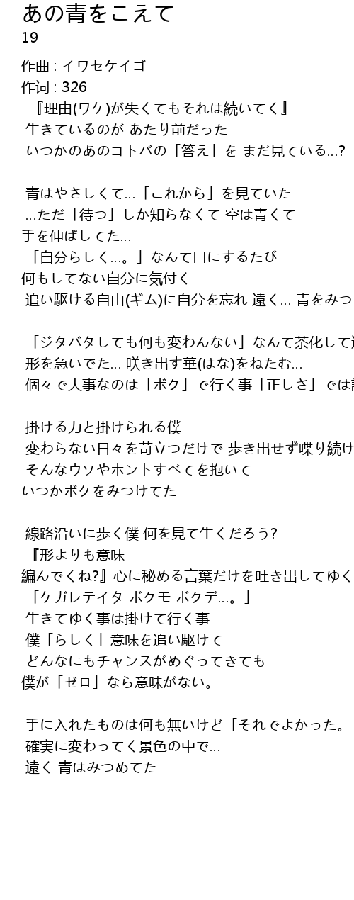 | …ただ「待つ」しか知らなくて 空は青くて 手を伸ばしてた… | |