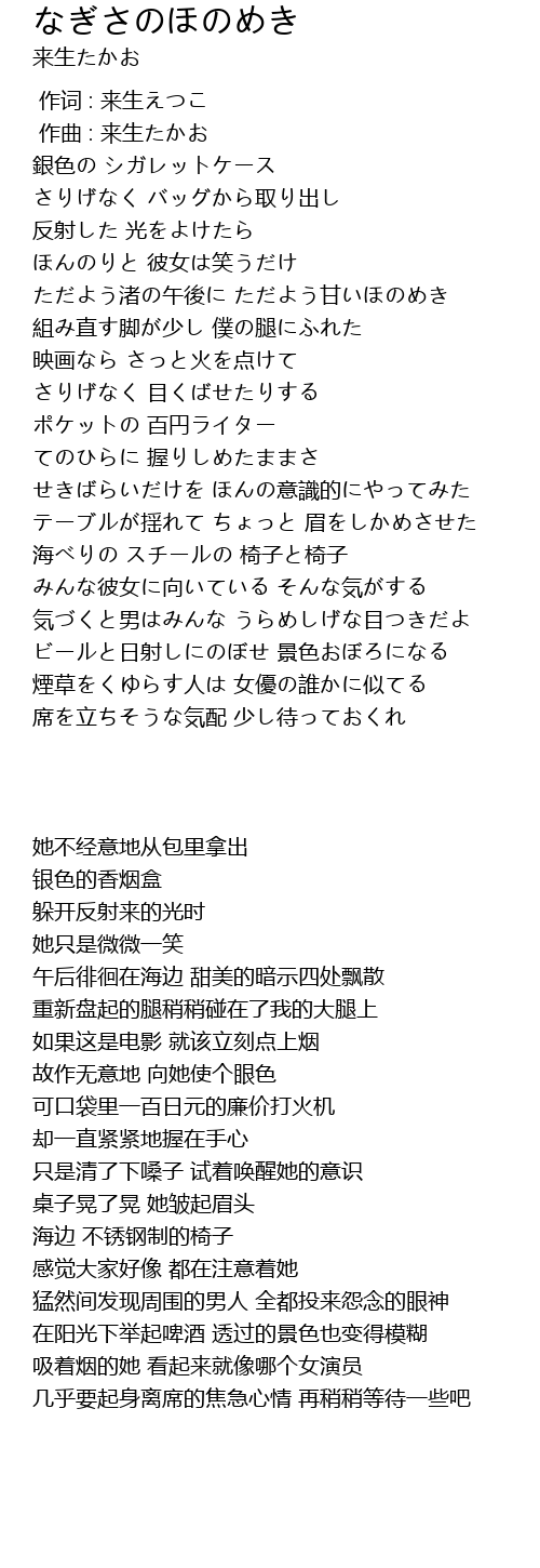 | [00:45.127] | ただよう渚の午後に ただよう甘いほのめき |