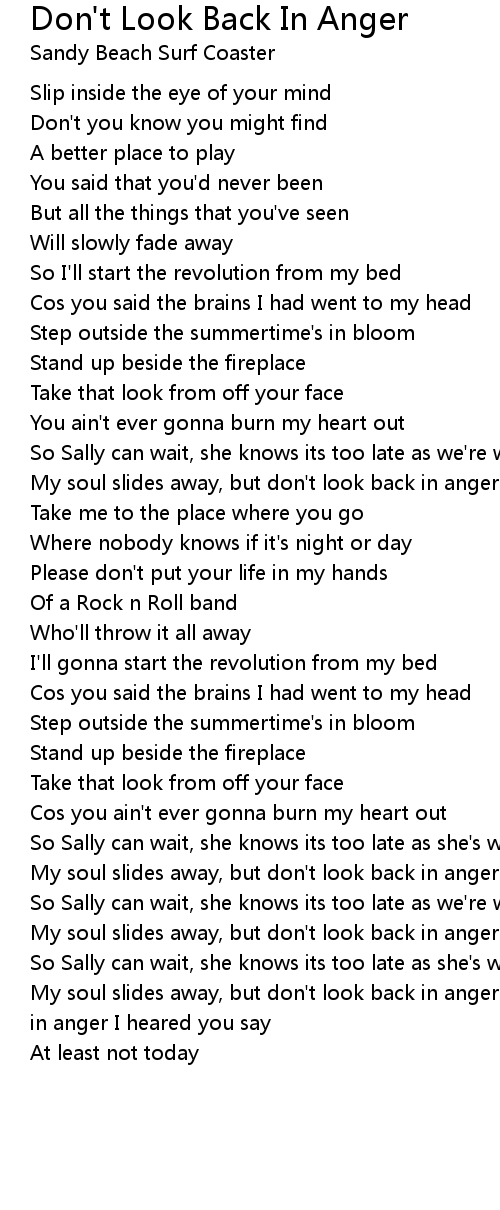 [01:19.87] My soul slides away, but don't look back in anger I heared you say