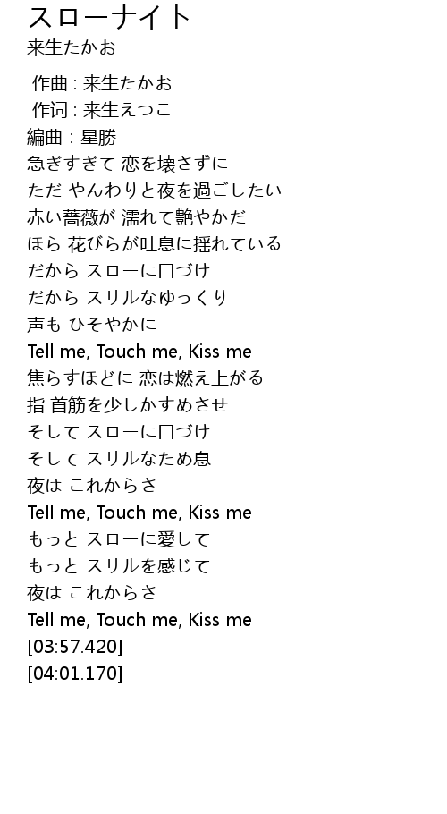 | [03:48.940] | Tell me, Touch me, Kiss me |