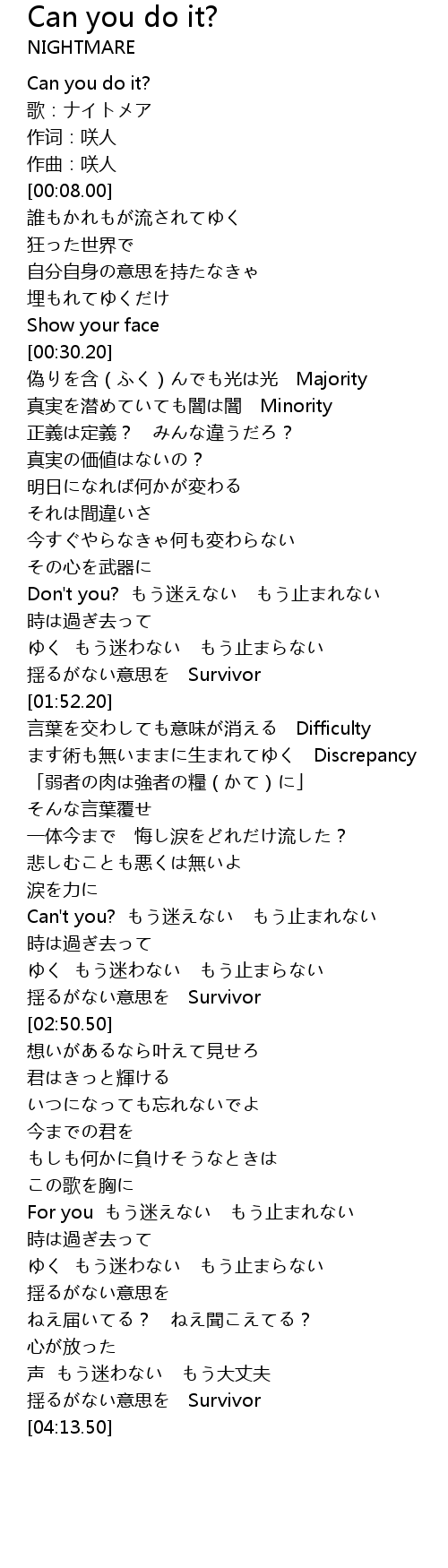 | [02:28.95] | Can't you? もう迷えない もう止まれない |
