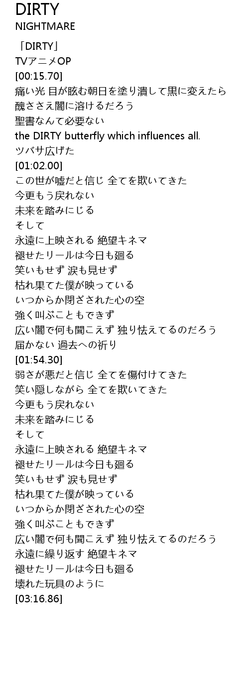 | [00:04.20] | 「DIRTY」 |
