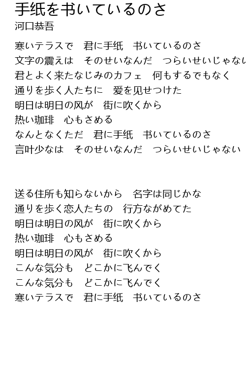 | 寒いテラスで 君に手纸 书いているのさ | |