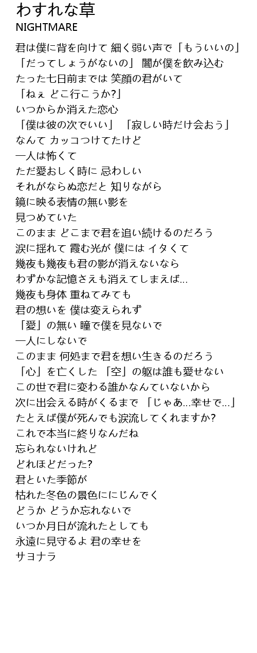 | Song | わすれな草 |