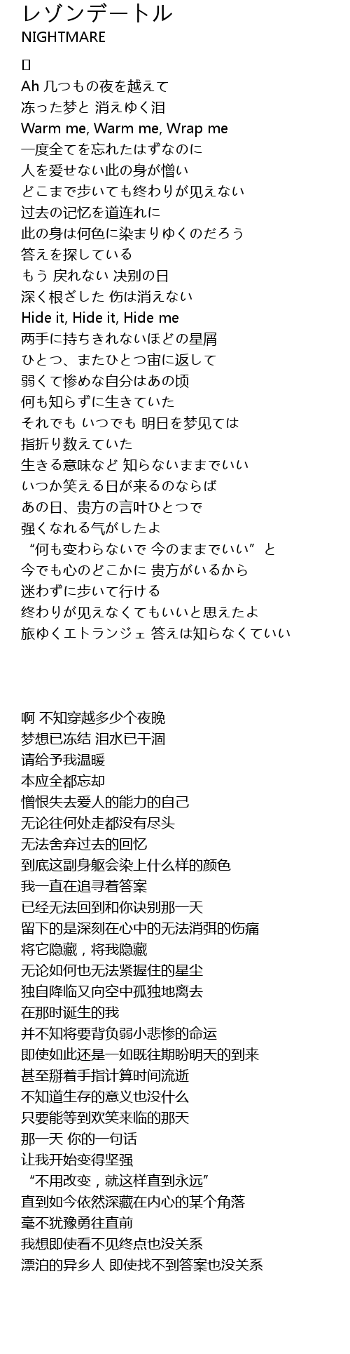 | [01:30.16] | Hide it, Hide it, Hide me |