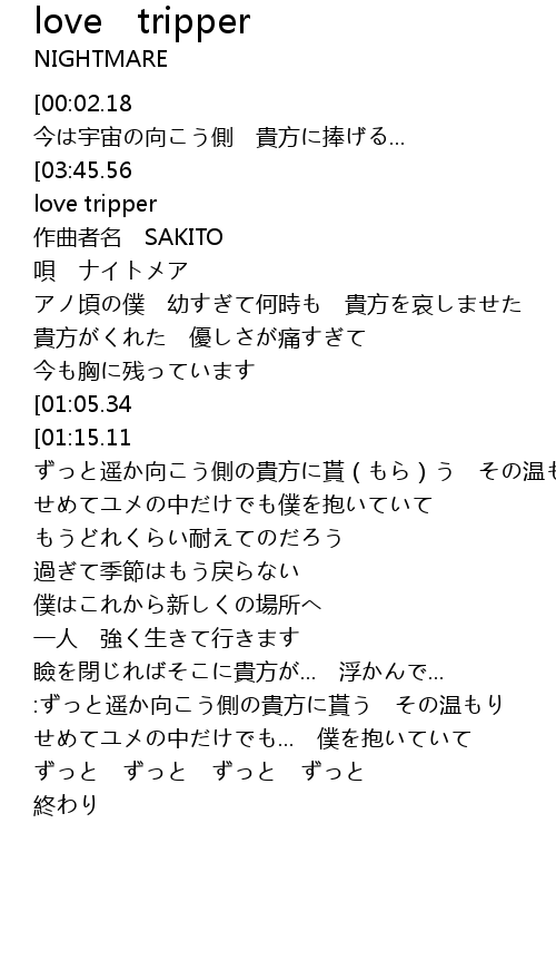 | [00:12.45] | 今は宇宙の向こう側 貴方に捧げる... |