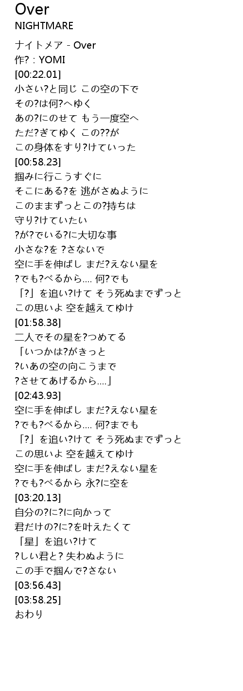 | [00:00.00] | ナイトメア - Over |
