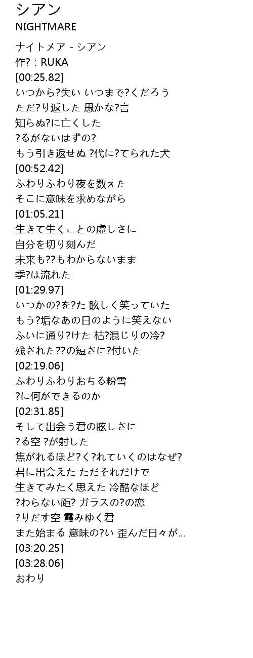 | [00:00.00] | ナイトメア - シアン |