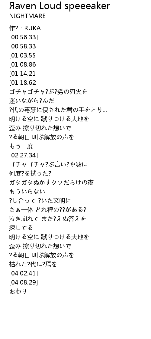 | [01:35.57][01:03.55] | ?れる?は?す? 罪を、キミを、日々を.. |