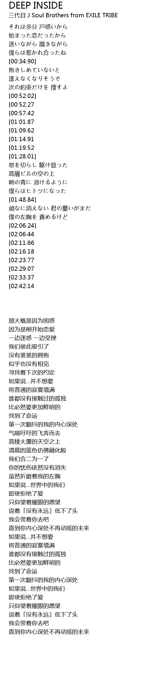 | [03:54.00][02:33.37] | yao wei lai Your deep inside |