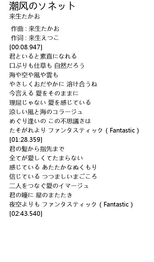 | [00:00.000] | 作曲 : 来生たかお |