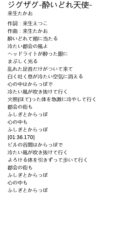 | [01:03.020] | 火照(ほて)った体を急激に冷やして行く |