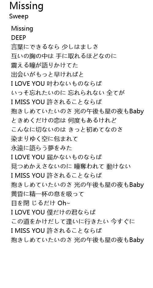 | [03:33.44] | I MISS YOU xǔ |