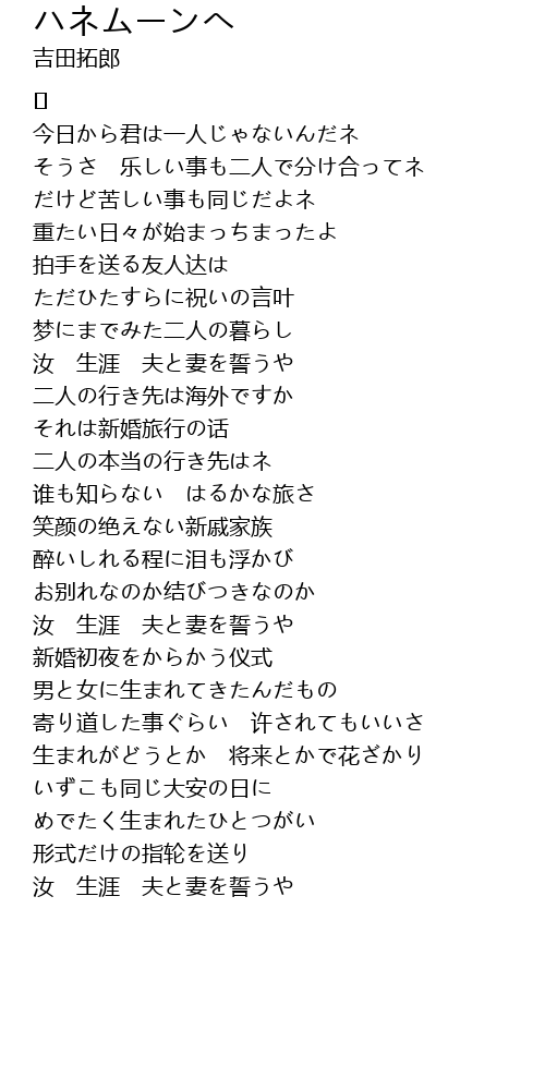 | Song | ハネムーンへ |
