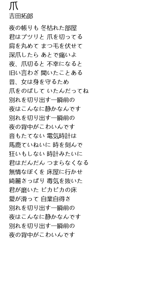 君はプツリと 爪を切ってる |