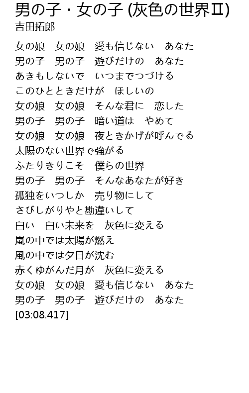 | Song | 男の子・女の子 (灰色の世界Ⅱ) |