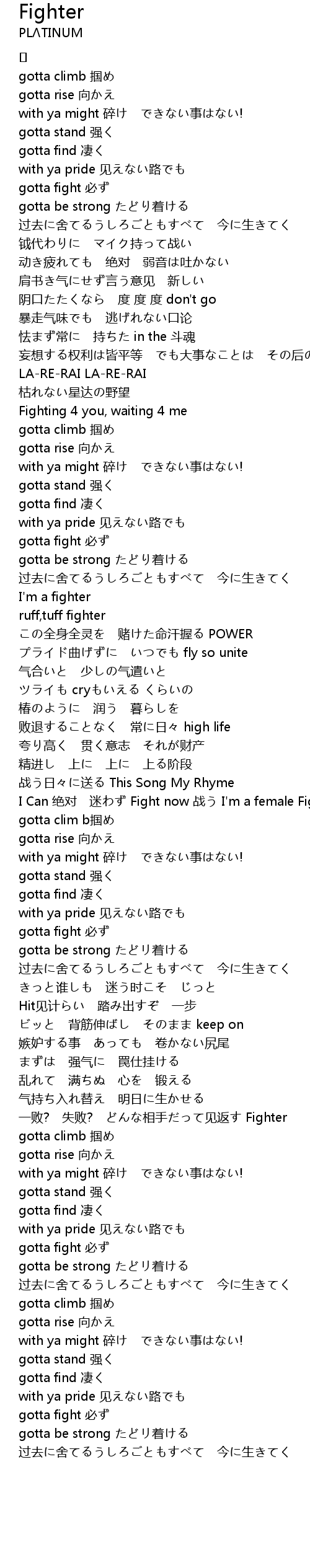 | I Can 绝对 迷わず Fight now 战う I'm a female Fighter | |