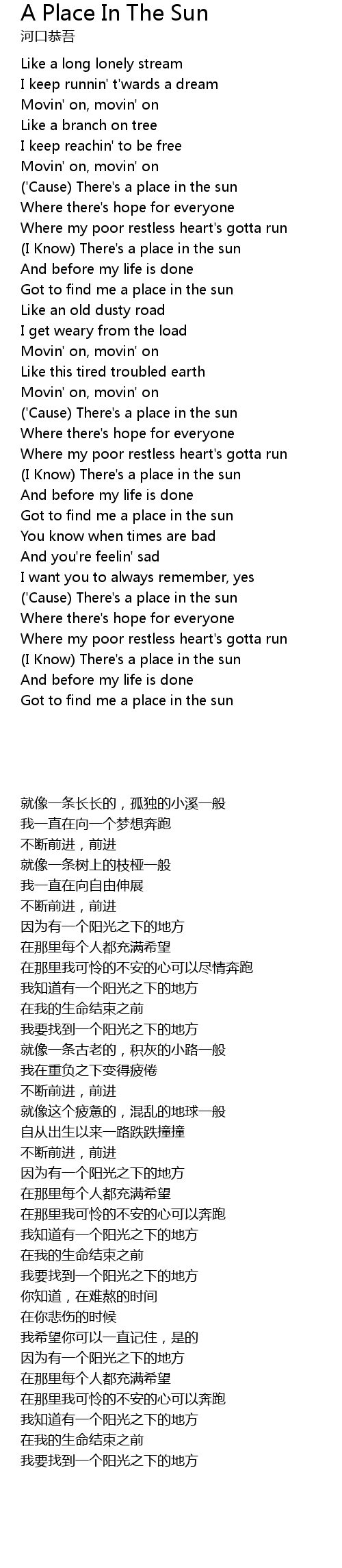 | ('Cause) There's a place in the sun | |