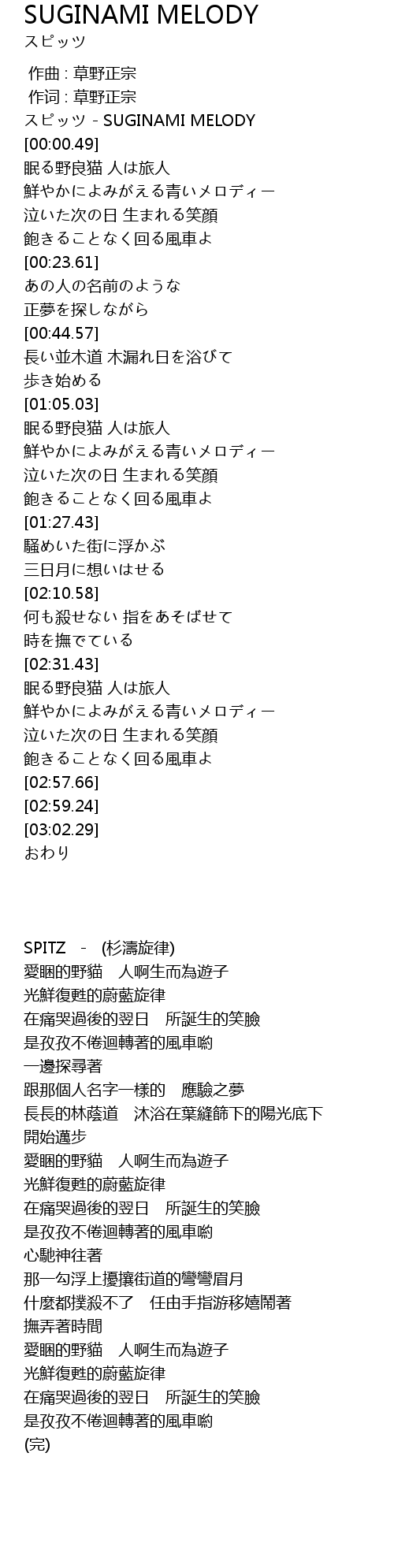 | [00:00.00] | スピッツ - SUGINAMI MELODY |