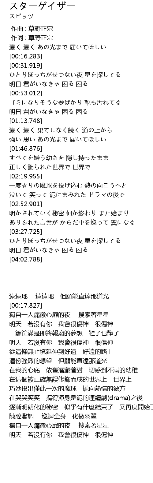 | [03:40.647] | ひとりぼっちがせつない夜 星を探してる |