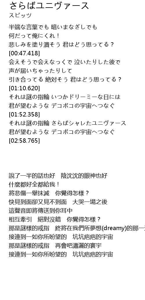 君が望むような デコボコの宇宙へつなぐ |