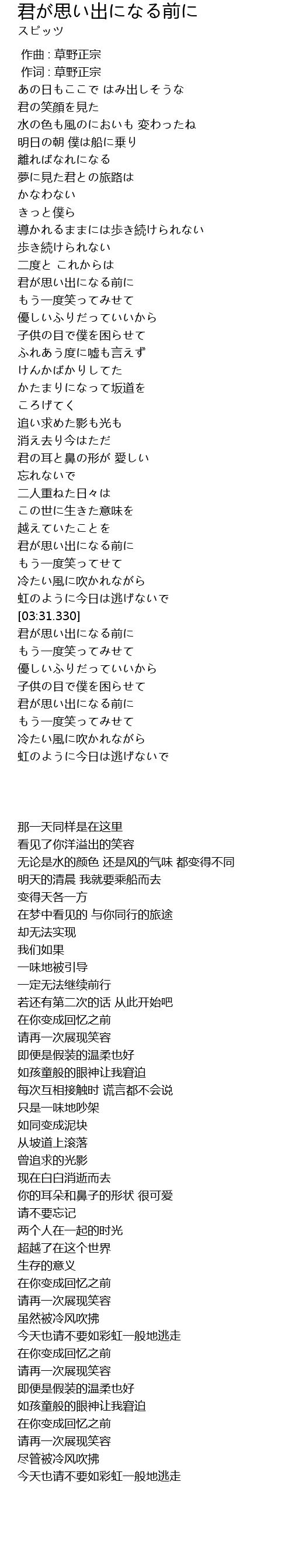 | [03:48.780] | 君が思い出になる前に |