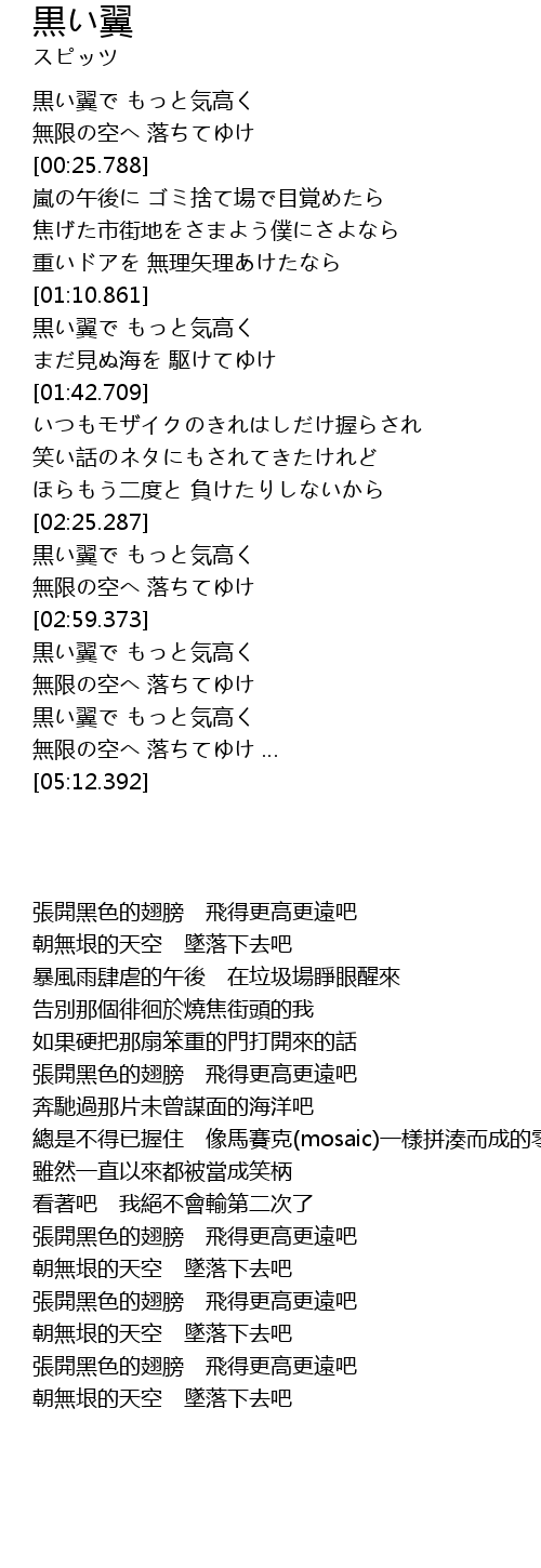 | [02:47.019] | 無限の空へ 落ちてゆけ |
