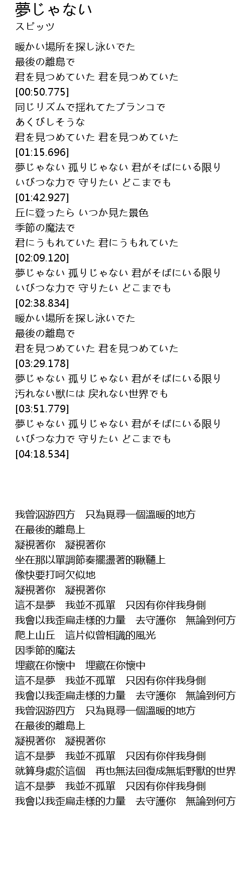 夢じゃない 孤りじゃない 君がそばにいる限り |