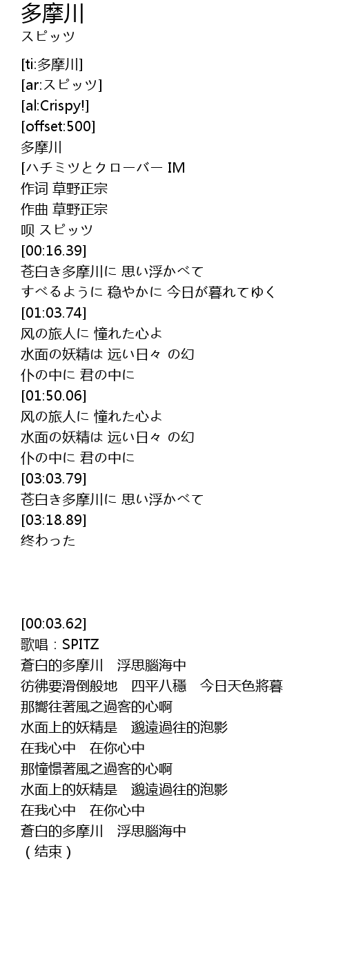| [00:03.62] | 多摩川 |