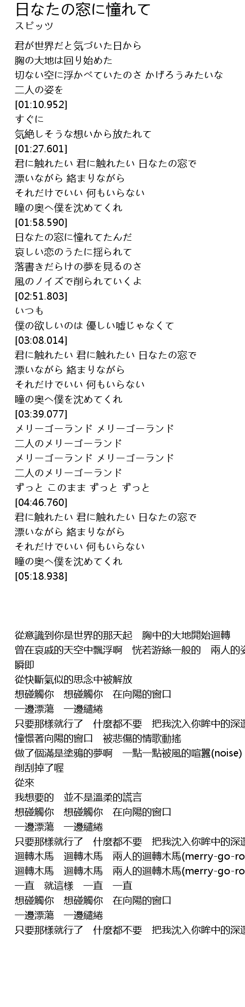 | [01:28.491] | 君に触れたい 君に触れたい 日なたの窓で |