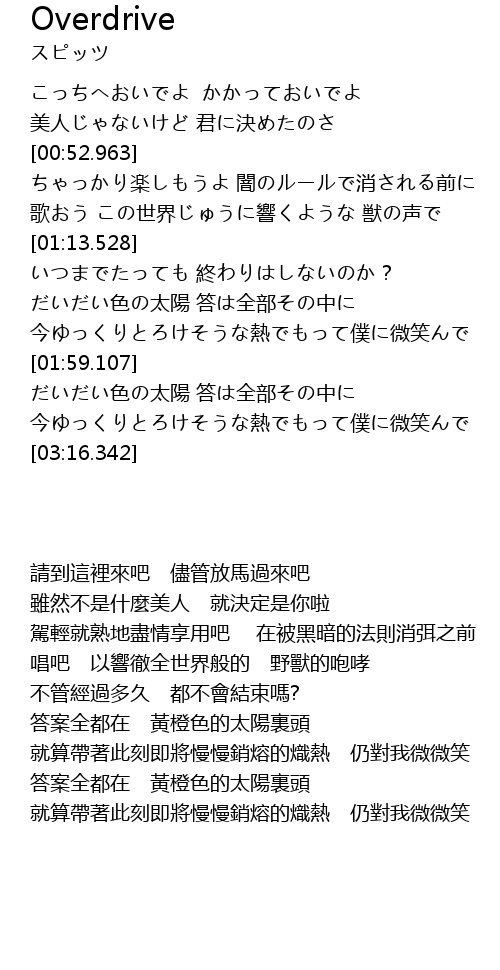 | [01:41.513] | だいだい色の太陽 答は全部その中に |