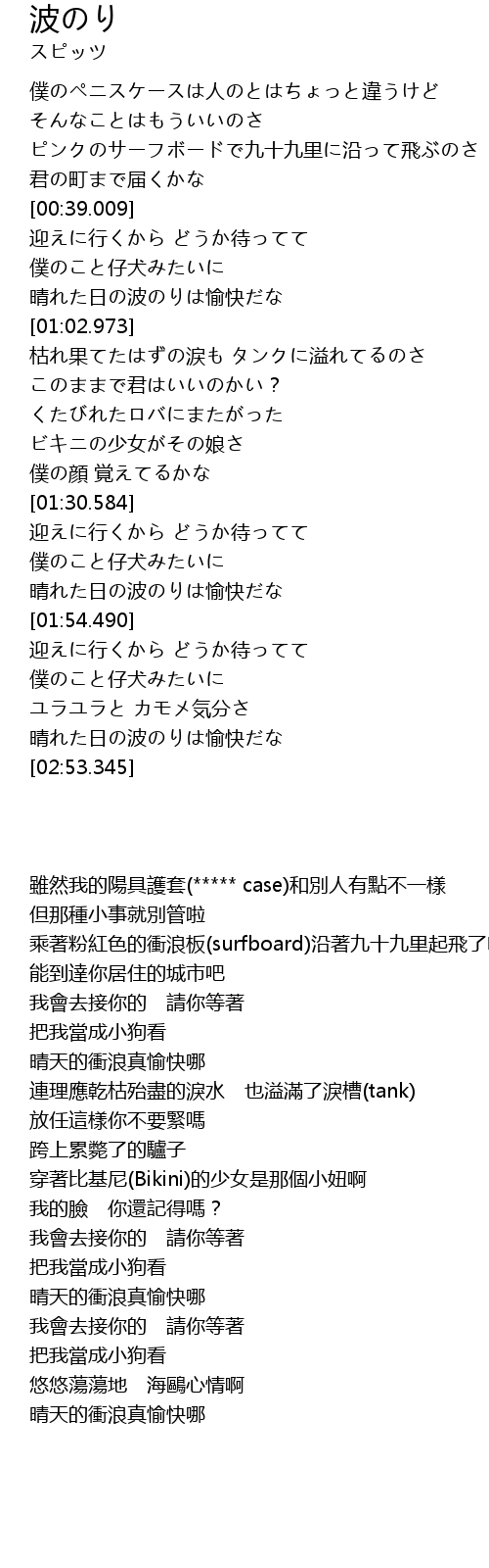 [00:27.814] ピンクのサーフボードで九十九里に沿って飛ぶのさ