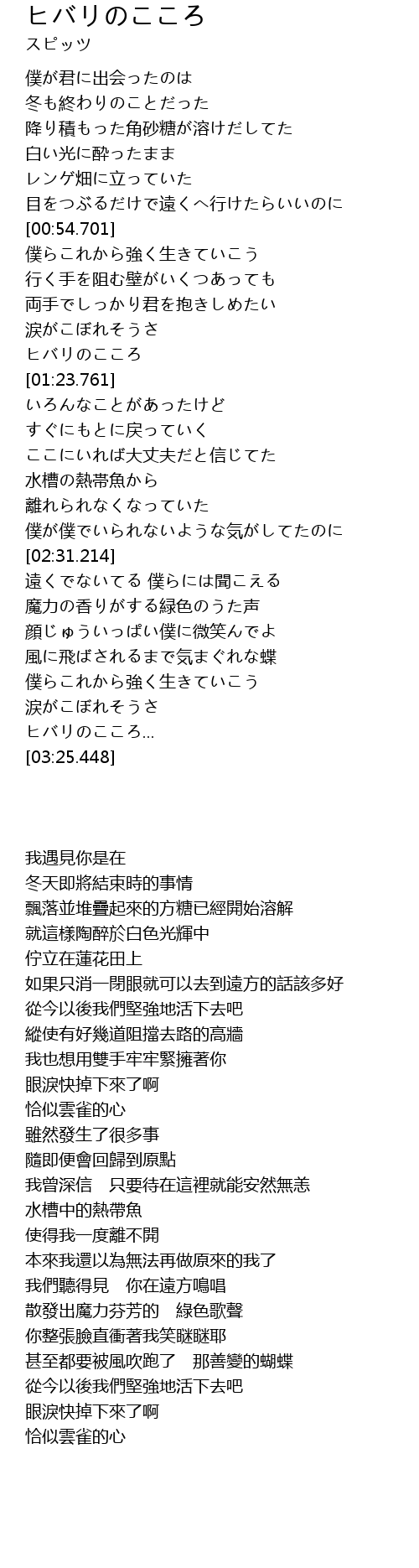 | [02:52.301] | 風に飛ばされるまで気まぐれな蝶 |