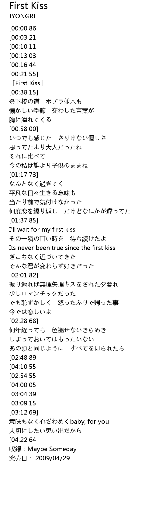 | [00:24.15] | 「First Kiss」 |