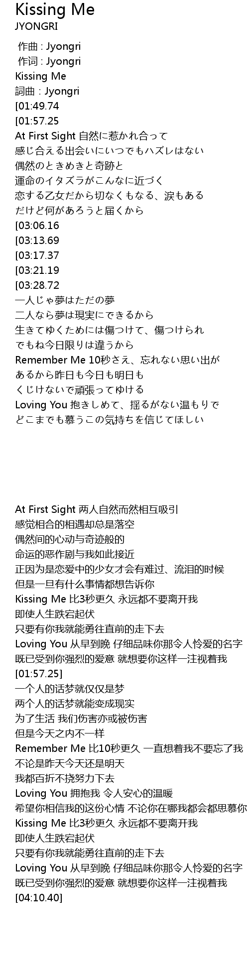| [01:19.37][03:06.16] | Kissing Me 3秒より、永遠に離さない |