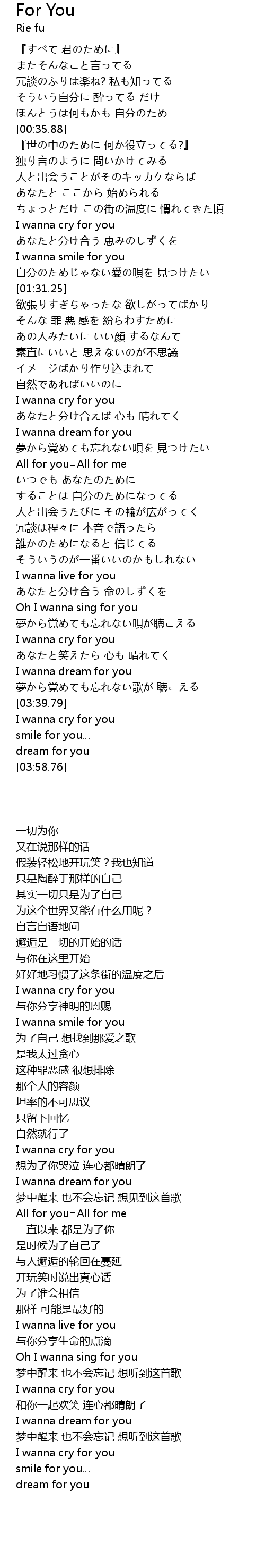 | [02:22.63] | All for you=All for me |