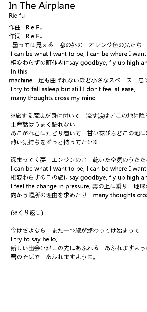 | I feel the change in pressure, 雲の上に乗り 地球の形この空彩り | |