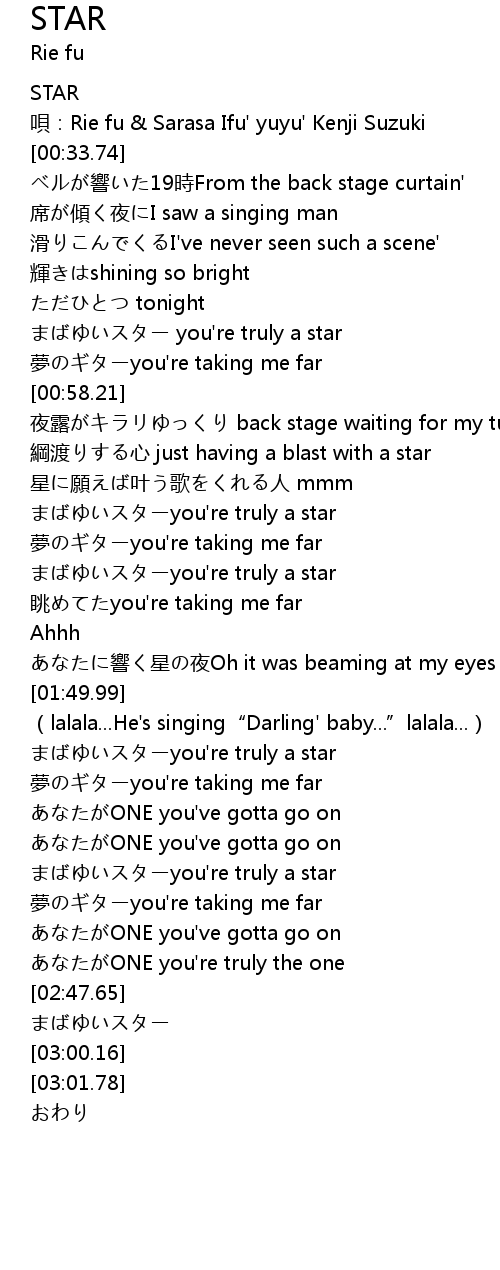 | [02:14.39] | まばゆいスターyou're truly a star |