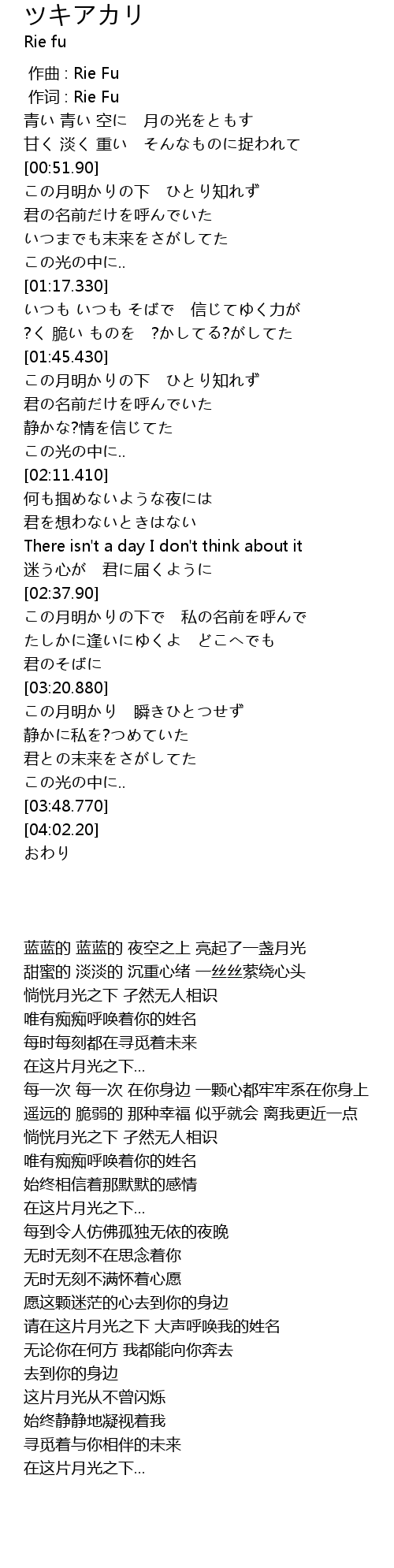 | [00:51.490] | この月明かりの下 ひとり知れず |