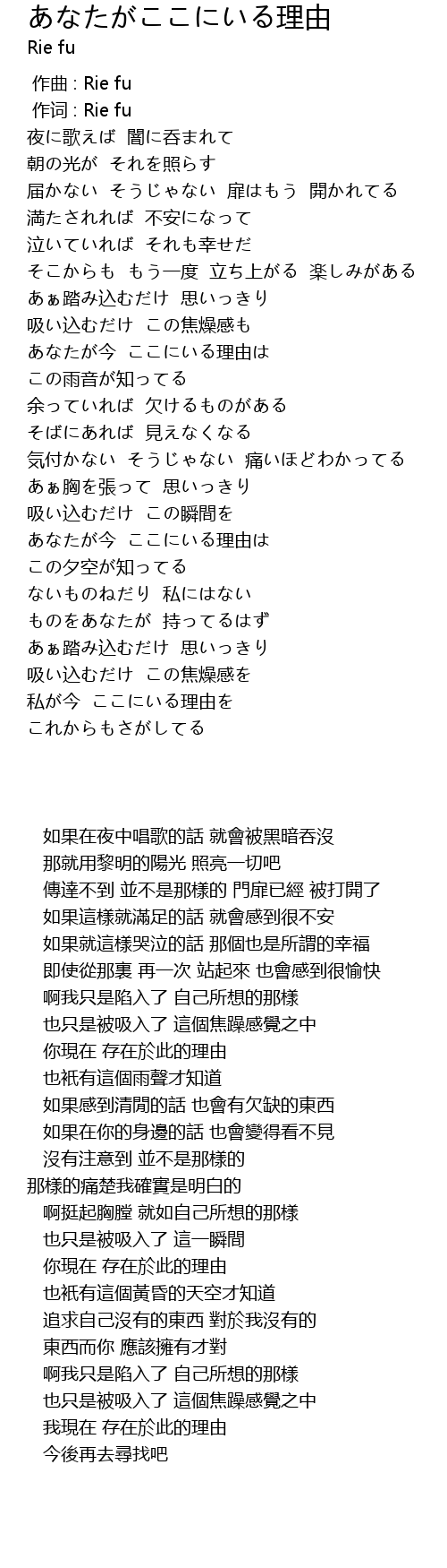 作词 : Rie fu |