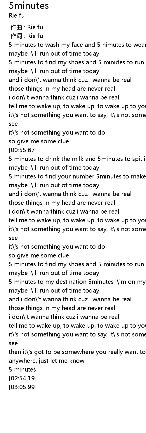 | [01:08.35] | 5 minutes to find your number 5minutes to make the call |
