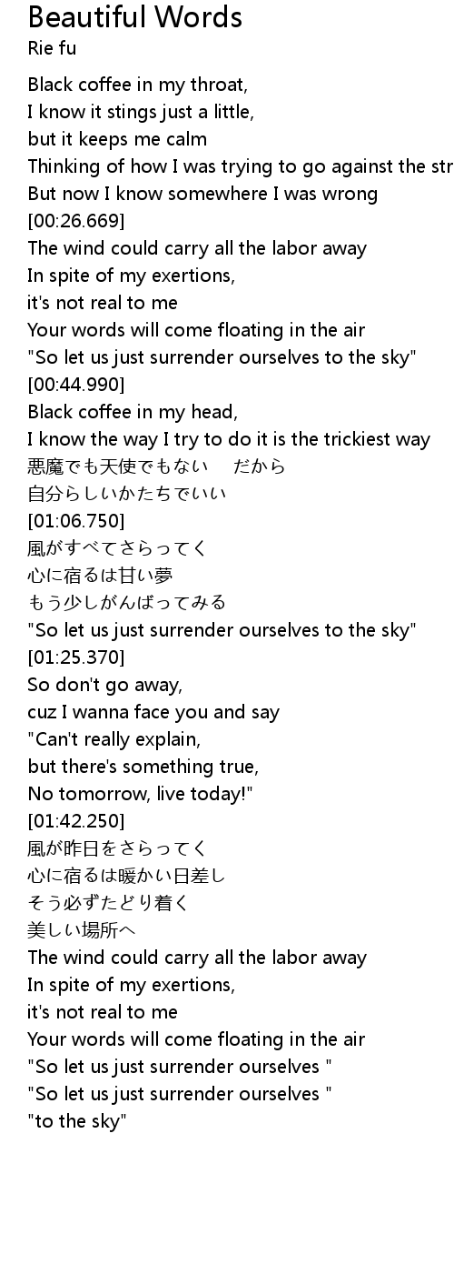 | [00:38.990] | "So let us just surrender ourselves to the sky" |