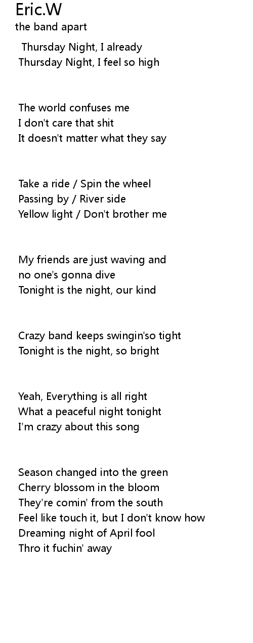 Thursday Night, I feel so high |