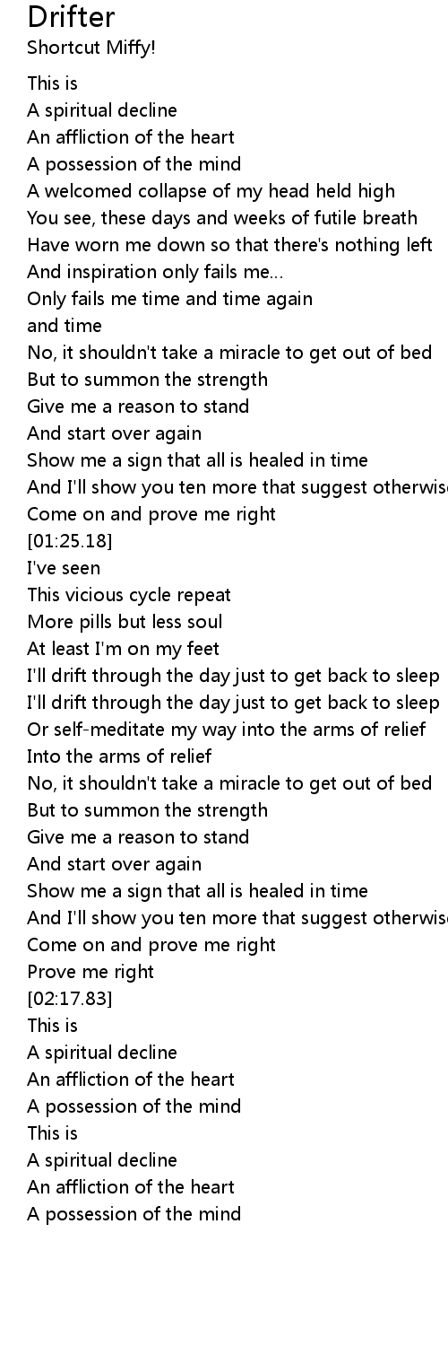 | [01:53.24] | No, it shouldn't take a miracle to get out of bed |